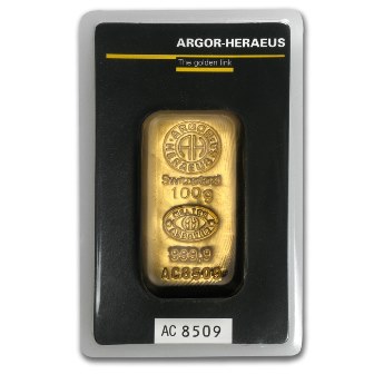 Argor-Heraeus is one of the world's most trusted and popular brands of LBMA good-delivery refiners in Switzerland. Headquartered in Mendrisio, Switzerland, it is considered by many to be one of the largest processors of Precious Metals internationally. Well known for its quality and purity, the brand is frequently traded by investors for its fine Gold content and weight. Every Argor-Heraeus gold bar offers one of the best combinations of quality, weight, and purity, making them extremely popular around the world.