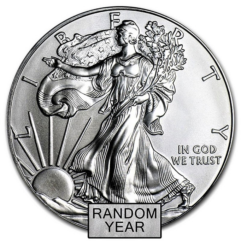 The weight and purity of American Silver Eagle bullion coins are officially guaranteed by the United States Government. Each silver coin contains a minimum of one troy ounce of 99.9% pure silver. The obverse of the American Eagle silver coins features Adolph A. Weinman's "Walking Liberty" half dollar design. This design is often regarded as one of the most stunning coins ever produced in America.